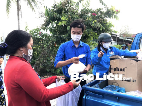 Tuổi trẻ Bạc Liêu tổ chức các hoạt động tặng lương thực, nhu yếu phẩm cho người dân có hoàn cảnh khó khăn bị ảnh hưởng bởi dịch bệnh COVID-19. Ảnh: H.L