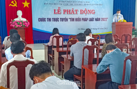 (CMO) Chiều ngày 24/2, UBND tỉnh tổ chức Lễ phát động cuộc thi trực tuyến “Tìm hiểu pháp luật năm 2022” trên địa bàn tỉnh. Hoạt động này nhằm đẩy mạnh công tác phổ biến, giáo dục pháp luật, hòa giải ở cơ sở, xây dựng cấp xã đạt chuẩn tiếp cận pháp luật…