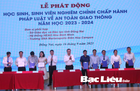Sáng 16/9, tại tỉnh Đồng Nai, Bộ GD-ĐT phối hợp Ủy ban An toàn giao thông (ATGT) Quốc gia, Công ty Honda Việt Nam, Quỹ Bảo hiểm xe cơ giới (Hiệp hội Bảo hiểm Việt Nam) tổ chức lễ phát động học sinh, sinh viên (HSSV) nghiêm chỉnh chấp hành pháp luật về ATGT và tuyên truyền pháp luật về ATGT đường bộ, hướng dẫn kỹ năng lái xe an toàn năm học 2023 - 2024 bằng hình thức trực tuyến với 62 điểm cầu trong cả nước.