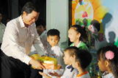 Phó chủ tịch UBND tỉnh Cà Mau Thân Đức Hưởng tặng quà các em có hoàn cảnh đặc biệt khó khăn.