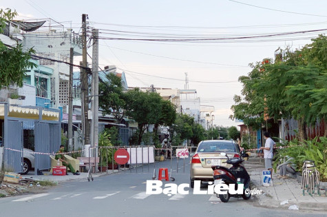 Phong tỏa một đoạn đường Hoàng Diệu (khóm 9, Phường 1, TP. Bạc Liêu) phục vụ công tác phòng, chống dịch COVID-19.