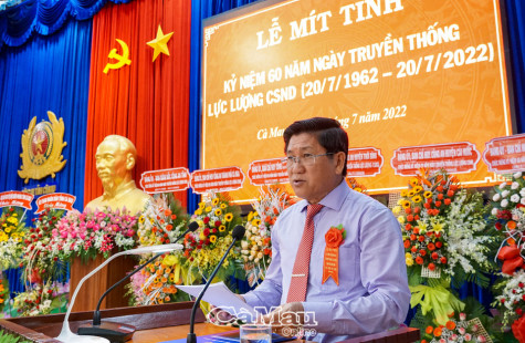 (CMO) Sáng ngày 15/7, Công an tỉnh Cà Mau long trọng tổ chức Lễ mít tinh Kỷ niệm 60 năm Ngày truyền thống lực lượng Cảnh sát Nhân dân (20/7/1962 – 20/7/2022). Dự lễ có đồng chí Lê Văn Sử, Tỉnh uỷ viên, Phó chủ tịch UBND tỉnh.