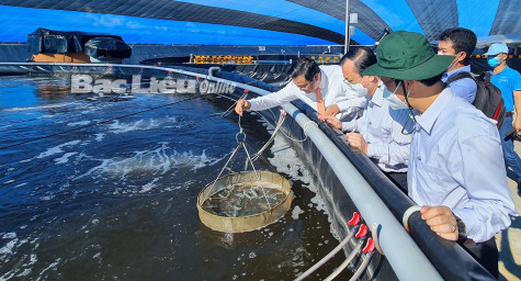 Lãnh đạo Sở NN&PTNT tham quan mô hình nuôi tôm công nghệ cao ở xã Vĩnh Trạch Đông (TP. Bạc Liêu).