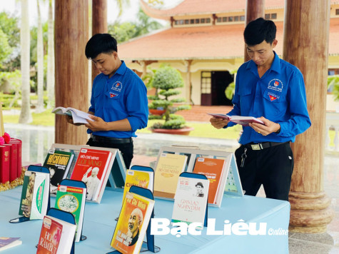 Đoàn viên - thanh niên tham quan và tìm hiểu sách viết về Chủ tịch Hồ Chí Minh. Ảnh: H.L