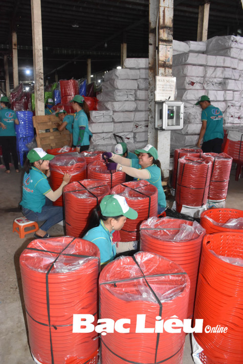 Lao động nông thôn được giải quyết việc làm tại Công ty Nhựa Tý Liên (huyện Phước Long). Ảnh: K.T