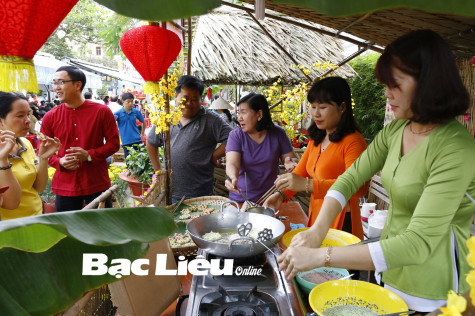Chế biến bánh dân gian tại Chợ quê ngày Tết của TP. Bạc Liêu. Ảnh: H.T