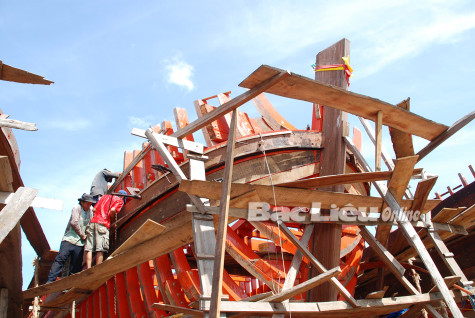 Đóng mới tàu đánh bắt xa bờ ở huyện Đông Hải. Ảnh: K.T