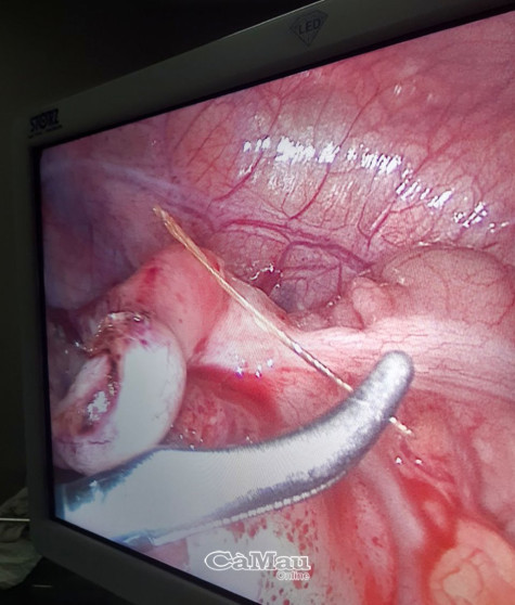 Trong quá trình phẫu thuật, ê kíp mổ phát hiện thêm dị vật là 1 đoạn xương cá khoảng 2 cm xuyên thủng ruột thừa. Sau khi lấy dị vật ra, các bác sĩ mới tiến hành nội soi cắt ruột thừa cho bệnh nhân.