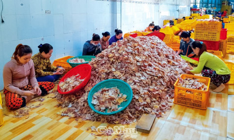 Tết năm nay, mặc dù không khí sản xuất, kinh doanh có phần giảm nhiệt nhưng hiện các công ty, doanh nghiệp, cơ sở kinh doanh hải sản vẫn đang tất bật hoạt động thu mua, chế biến nhằm cung ứng sản phẩm cho các đầu mối, khách hàng trong và ngoài nước. Vựa khô Thảo Bình, ở Khóm 7, là một trong những cơ sở sản xuất, kinh doanh các mặt hàng khô lớn nhất, nhì trên địa bàn thị trấn Sông Ðốc. Cơ sở có hơn 100 mặt hàng khô các loại, từ đặc sản vùng biển cho đến vùng ngọt, mực khô, tôm khô. Sản phẩm tiêu thụ nội địa và xuất khẩu sang thị trường Thái Lan, Trung Quốc. Ðể có sản phẩm khô ngon, vựa khô Thảo Bình thu mua nguyên liệu tươi sống từ các ghe đánh bắt thuỷ sản ở địa phương, sản xuất các mặt hàng khô quanh năm.