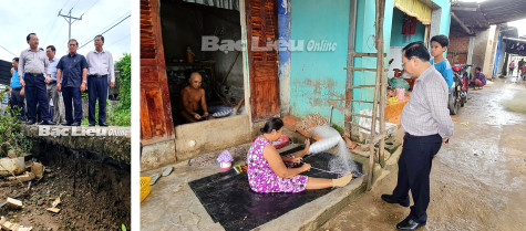 Phó Chủ tịch Thường trực UBND tỉnh - Lê Tấn Cận kiểm tra các khu vực sạt ở ở Phường Nhà Mát, TP. Bạc Liêu.