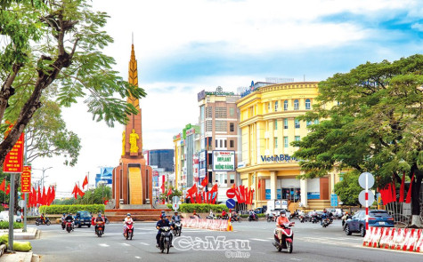| TP Cà Mau trang hoàng cờ hoa rực rỡ đón chào xuân mới. |