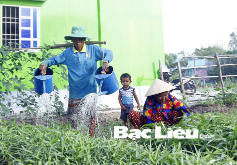 Người dân huyện Hồng Dân chăm sóc hàng rào cây xanh, tạo mỹ quan nông thôn. Ảnh: H.T