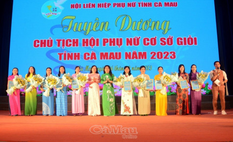 Dịp này, Ban Thường vụ Hội LHPN tỉnh Cà Mau tuyên dương 10 cá nhân là chủ tịch Hội LHPN cơ sở đã có nhiều đóng góp xuất sắc tiêu biểu cho hoạt động công tác Hội và phong trào phụ nữ.