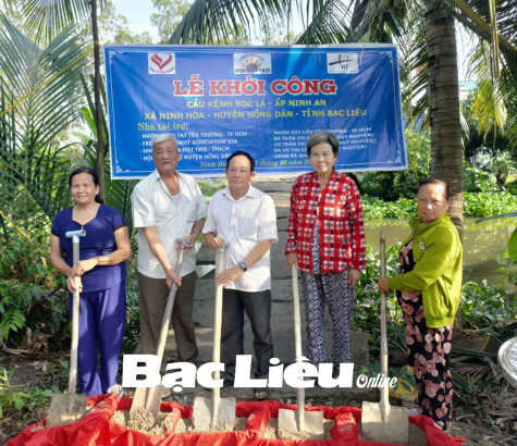 Hội Phụ nữ xã Ninh Hòa vận động mạnh thường quân khởi công xây dựng cầu kênh Rọc Lá ở ấp Ninh An. Ảnh: T.L
