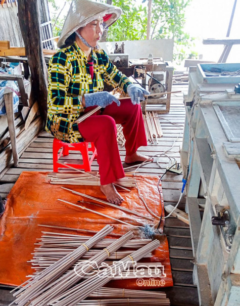 | Phụ nữ ấp Kinh 17, xã Tam Giang sản xuất đũa đước. |