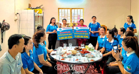 | Hội LHPN thành phố trao nguồn vốn hỗ trợ khởi nghiệp cho 2 hội viên thuộc Tổ may gia công Ấp 5, xã Tân Thành. |