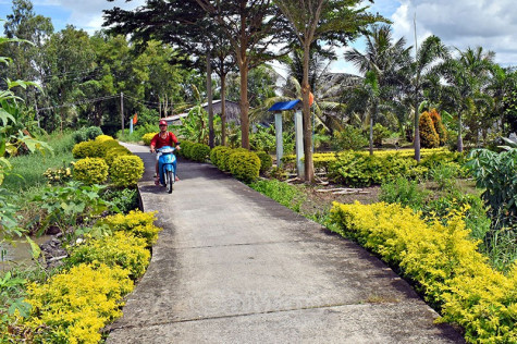 | Tuyến lộ ấp Ba Tiệm, xã Phú Mỹ, người dân trồng hàng rào cây xanh, bộ mặt nông thôn ngày thêm khởi sắc. |