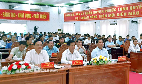 Phát biểu chỉ đạo hội nghị, Bí thư Tỉnh ủy - Lữ Văn Hùng đánh giá cao và biểu dương những kết quả đạt được trong phát triển kinh tế - xã hội, đảm bảo quốc phòng - an ninh của huyện Phước Long. Điều này cho thấy Đảng bộ có sự đoàn kết thống nhất cao, quyết liệt trong công tác chỉ đạo, lãnh đạo, điều hành thực hiện các mặt công tác. Tuy nhiên, đồng chí Bí thư Tỉnh ủy cũng lưu ý một số hạn chế, tồn tại mà huyện cần sớm khắc phục như: tiến độ thu ngân sách chưa đạt kế hoạch; công tác tham mưu, phối hợp của các ngành chuyên môn huyện với các sở, ngành cấp tỉnh trong triển khai các dự án, công trình trên địa bàn huyện tiến độ còn chậm; công tác quản lý trật tự đô thị còn hạn chế, môi trường khu vực đô thị, thu gom, xử lý rác thải chưa đảm bảo… Đồng thời, đồng chí Bí thư Tỉnh ủy cũng yêu cầu huyện cần rà soát ngay các chỉ tiêu đạt thấp, quyết tâm thực hiện đạt và vượt vào cuối năm; chủ động làm tốt công tác phòng chống dịch bệnh, nhất là công tác tiêm vắc-xin ngừa COVID-19; tập trung thực hiện tốt nhiệm vụ xây dựng nông thôn mới kiểu mẫu, phấn đấu xây dựng Phước Long trở thành huyện nông thôn mới kiểu mẫu và trở thành trung tâm phát triển kinh tế - xã hội vùng Bắc Quốc lộ 1A của tỉnh vào năm 2025, theo Nghị quyết của Ban Chấp hành Đảng bộ tỉnh khóa XVI.