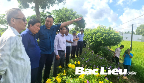 Lãnh đạo tỉnh và TX. Giá Rai kiểm tra tình hình sản xuất nông nghiệp tại phường Láng Tròn (TX. Giá Rai). Ảnh: M.Đ
