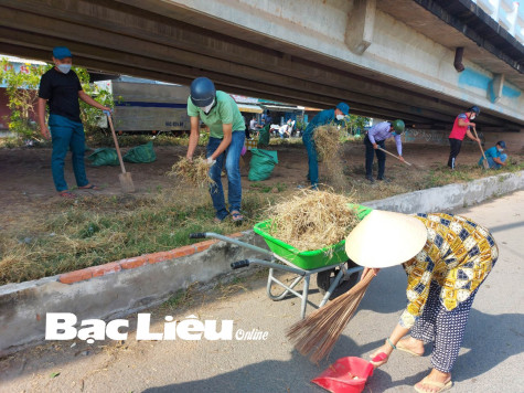 Các tổ chức đoàn thể và người dân phường Nhà Mát ra quân làm vệ sinh môi trường. Ảnh: T.A