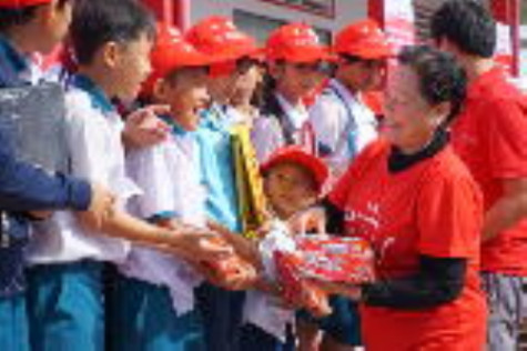 Ngoài các hoạt động vui chơi giải trí, các em còn được tặng quà tại chỗ như: bánh, sữa, tập.