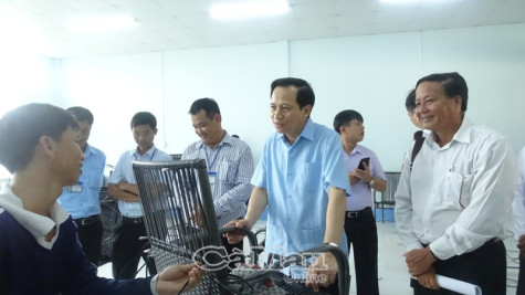 | Bộ trưởng Bộ LĐ-TB&XH Đào Ngọc Dung thăm hỏi học viên tại Cơ sở cai nghiện ma túy xã Khánh An, huyện U Minh. |