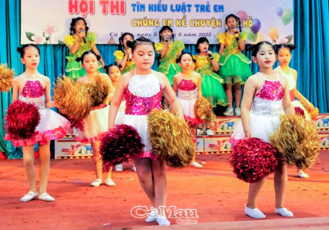 | Trẻ em cần được sống trong môi trường an toàn, lành mạnh. (Trong ảnh: Các em thiếu nhi biểu diễn văn nghệ hoạt động hè năm 2022, tại Nhà Thiếu nhi tỉnh Cà Mau). |