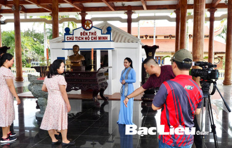 (BL-HT) Ngày 14/3, Đài Truyền hình TP. Hồ Chí Minh phối hợp với Sở VH-TT&DL Bạc Liêu tổ chức quay hình tại Đền thờ Chủ tịch Hồ Chí Minh (xã Châu Thới, huyện Vĩnh Lợi) - ảnh.