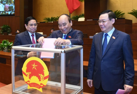 | Chủ tịch nước Nguyễn Xuân Phúc, Thủ tướng Phạm Minh Chính, Chủ tịch Quốc hội Vương Đình Huệ bỏ phiếu phê chuẩn đề nghị việc bổ nhiệm một số Phó Thủ tướng Chính phủ, một số Bộ trưởng và thành viên khác của Chính phủ. |