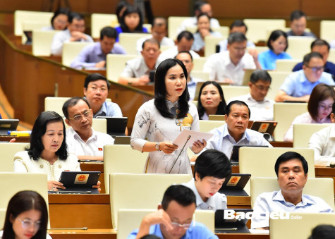 * Đại biểu Lê Thị Ngọc Linh (Đoàn ĐBQH tỉnh Bạc Liêu) cho ý kiến về quy định cấp phép tài nguyên nước