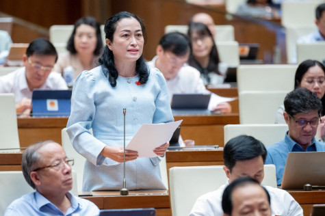 Đại biểu Trần Thị Hoa Ry phát biểu đóng góp tại hội trường sáng 19/6. Ảnh: Đoàn ĐBQH tỉnh Bạc Liêu cung cấp