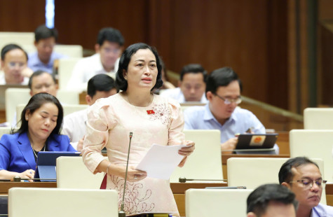 Đại biểu Quốc hội Trần Thị Hoa Ry - Phó Chủ tịch Hội đồng Dân tộc của Quốc hội góp ý thảo luận tại hội trường.
