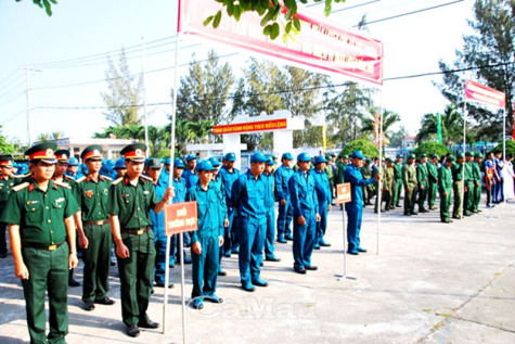 | Lực lượng quân sự huyện U Minh ra quân huấn luyện. |