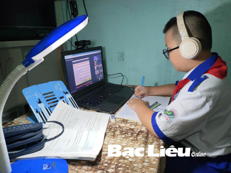 Học sinh tiểu học trên địa bàn TP. Bạc Liêu trong giờ học trực tuyến. Ảnh: H.T