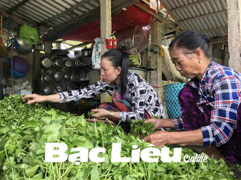 Gia đình ông Trương Văn Tâm (ấp Tường 3B, xã Vĩnh Thanh, huyện Phước Long) thu hoạch rau má.