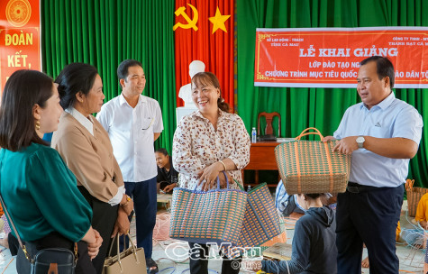 Phó chủ tịch UBND tỉnh Cà Mau Nguyễn Minh Luân (bìa phải) kiểm tra thực tế lớp học đan đát tại ấp Gò Công, xã Nguyễn Việt Khái thuộc Chương trình mục tiêu Quốc gia phát triển kinh tế - xã hội vùng đồng bào dân tộc thiểu số.