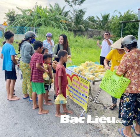 Tại đây, nhóm từ thiện đã tổ chức phát 150 ổ bánh mì chả lụa. Người đến nhận chủ yếu là những người có mức thu nhập thấp như bán vé số, mua bán phế liệu, bán hàng rong, phụ hồ…