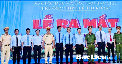 (BL-CK) Sáng 9/9, Phòng Cảnh sát giao thông (CSGT) Công an tỉnh phối hợp với Sở GD-ĐT tổ chức lễ ra mắt mô hình “Cổng trường an toàn giao thông” tại Trường THPT Lê Thị Riêng (huyện Hòa Bình) - (ảnh).