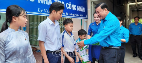 Dịp này 05 suất học bổng cho 05 học sinh có hoàn cảnh khó khăn là con em công nhân đang trọ tại nhà trọ Thiên Lộc, mỗi suất 300 ngàn đồng do LĐLĐ tỉnh vận động mạnh thường quân tài trợ.