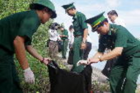 Sau lễ phát động, BĐBP, lực lượng đoàn viên, thanh niên xã Khánh Tiến và Khánh Hội tham gia thu gom rác, thực hiện chiến dịch “Hãy làm sạch biển”.