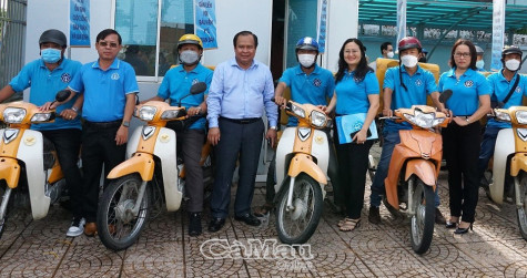 | Phó chủ tịch UBND tỉnh Cà Mau Nguyễn Minh Luân (thứ 4 từ trái sang) động viên viên chức BHXH, nhân viên Bưu điện tham gia diễu hành và tuyên truyền vận động người dân tham gia BHYT hộ gia đình, BHXH tự nguyện. |