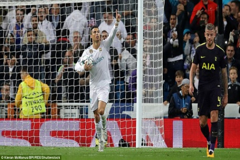 Mặc dù vậy, với bản lĩnh của mình, Real vẫn kiên trì tấn công và niềm vui cũng đã đến trước khi hiệp 1 khép lại. Ở phút 43, xuất phát từ tình huống Kroos đột phá và bị phạm lỗi trong vòng 16m50. Đứng trước cơ hội không thể tốt hơn trên chấm 11m, Ronaldo thực hiện thành công quả đá phạt để giữ lại 1 điểm quý giá cho đội chủ nhà.