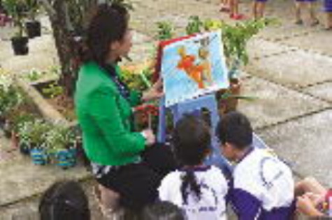 “Bên cạnh đó, mỗi lớp sẽ đảm nhận một bồn cây hoặc một góc thiên nhiên để chăm sóc, hằng ngày trẻ đều chăm chỉ ra tưới cây, nhặt rác xung quanh. Đây là bước thứ hai trong niên đồ tự lập khi trẻ vận dụng các kỹ năng để chăm sóc môi trường”, cô Hồng cho biết.