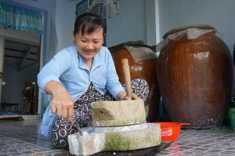 Không khí đón Tết của gia đình bà Trương Thị Riêng (71 tuổi, ấp Bùng Binh 1, xã Hoà Tân, TP Cà Mau) có thể coi là sớm nhất vùng. Vì cứ đầu tháng Chạp hằng năm, gia đình bà lại tất bật làm bánh Tết.