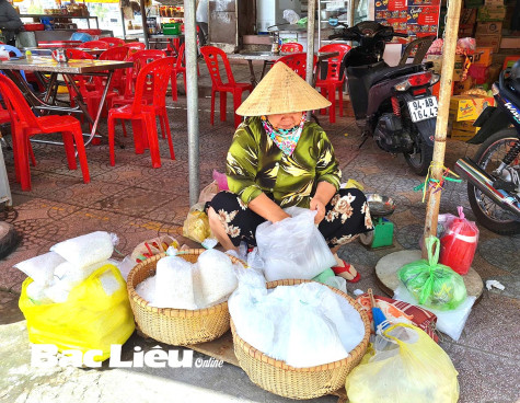 Năm nay 67 tuổi, nhưng bà Nguyễn Ngọc Tuyền (Phường 2, TP. Bạc Liêu) đã có 60 năm theo nghề bán muối. Ngay khi còn nhỏ đã theo mẹ rong ruổi khắp các con đường, ngõ hẻm để bán muối dạo, nên khi lập gia đình, bà Tuyền cũng chọn việc bán muối là nghề để mưu sinh. Bà Tuyền không gánh muối bán như mẹ mà chất sau xe đạp, hàng ngày đạp xe rảo quanh các con đường để bán dạo. Sau nhiều lần sinh con, sức khỏe không còn như trước nên bà tìm một chỗ cố định tại góc chợ Phường 3 để bán và gắn bó cho đến hôm nay. Bình quân mỗi ngày, bà bán được khoảng 60 - 100kg muối. Từ nghề bán muối đã giúp bà Tuyền nuôi dạy 3 người con lớn khôn. “Đã quen với công việc từ khi còn nhỏ nên hôm nào gia đình có việc phải nghỉ bán vài ngày là tôi cảm thấy buồn, nhớ quay quắt những thúng muối trắng. Vì vậy còn sức khỏe là tôi lại ra chợ đến góc ngồi quen thuộc bày muối ra bán. Đến trưa thì về, kiếm được đồng nào hay đồng nấy, có tiền dành dụm, hậu bị nuôi thân khi về già con cái đỡ vất vả”, bà Tuyền trải lòng.