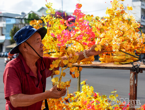 Ông Lê Hoàng Giang (Khóm 12, phường An Xuyên) gắn bó với nghề bán hoa thủ công mỗi dịp Tết đến, xuân về.
