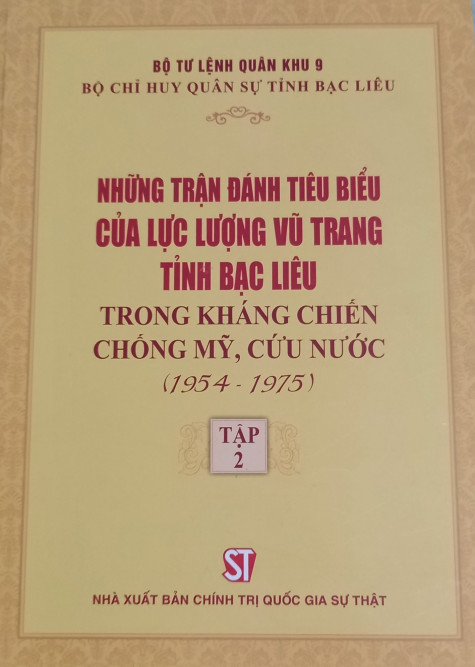 Quyển sách “Những trận đánh tiêu biểu của lực lượng vũ trang (LLVT) tỉnh Bạc Liêu” tập 2 do Bộ Chỉ huy Quân sự (CHQS) tỉnh chỉ đạo biên soạn, Nhà xuất bản Chính trị quốc gia Sự thật xuất bản cuối năm 2023 ghi lại chi tiết những cuộc chiến hào hùng của cha ông trong kháng chiến chống Mỹ cứu nước giai đoạn 1954 - 1975 đang được chuyền tay cho các thế hệ hôm nay tìm hiểu, nghiên cứu.