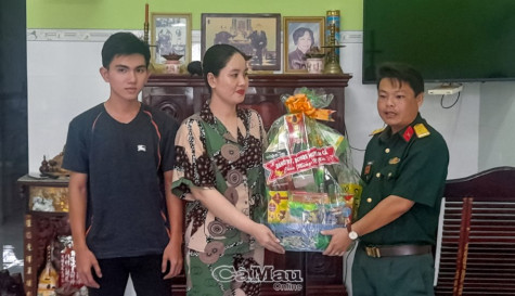 | Ban Chỉ huy Quân sự huyện đến động viên, tặng quà gia đình em Lê Phương Hậu, Khóm 3, thị trấn Năm Căn, có lệnh gọi nhập ngũ năm 2023. |