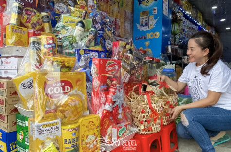 Chị Nguyễn Ngọc Phương, chủ cửa hàng Nghĩa (Phường 2, TP Cà Mau) có thâm niên kinh doanh mặt hàng phục vụ Tết nhiều năm qua. Ðể đáp ứng nhu cầu mua sắm của đông đảo người tiêu dùng, lượng hàng hoá cửa hàng nhập vào tăng từ 20-30% sản lượng, trong đó các dòng bánh, kẹo, mứt có hơn 40 loại, được nhập trữ kho từ đầu tháng 11 âm lịch. Hiện sức mua đang tăng dần. Ngoài ra, cửa hàng cũng chọn ra những sản phẩm có mẫu mã đẹp để phục vụ nhu cầu biếu tặng các giỏ quà khi khách cần.