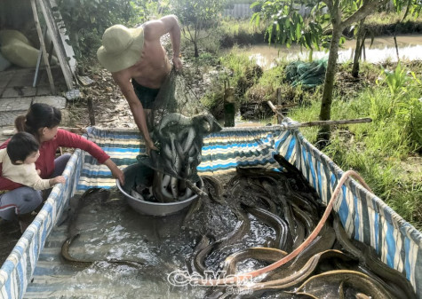 Nghề nuôi cá chình tại xã Tân Thành, TP Cà Mau cũng chịu tác động khi giá thành nhiều mặt hàng phục vụ nghề nuôi tăng.